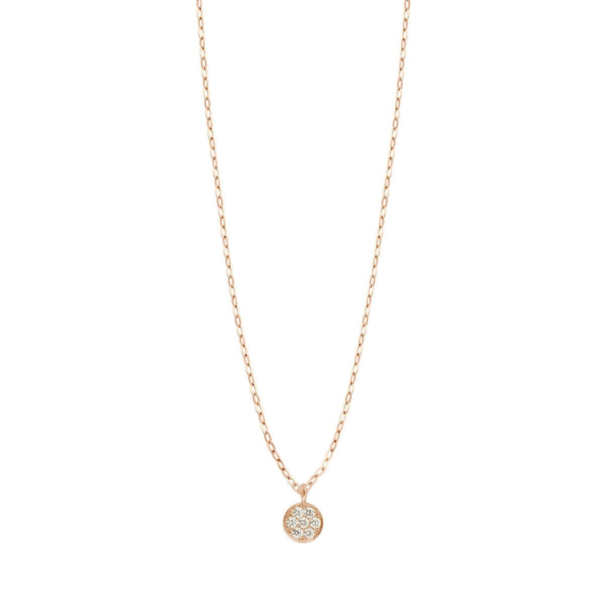 Like a cloud of stardust leaving a trail of joy and sparkle where it passes, the Pure Gigi Puce necklace on a classic gigi chain is a subtle good luck charm. Pure Gigi Puce necklace with a sparkling, discreet, 18 carat rose gold chain, highlighted by 7 pavé diamonds.AW96