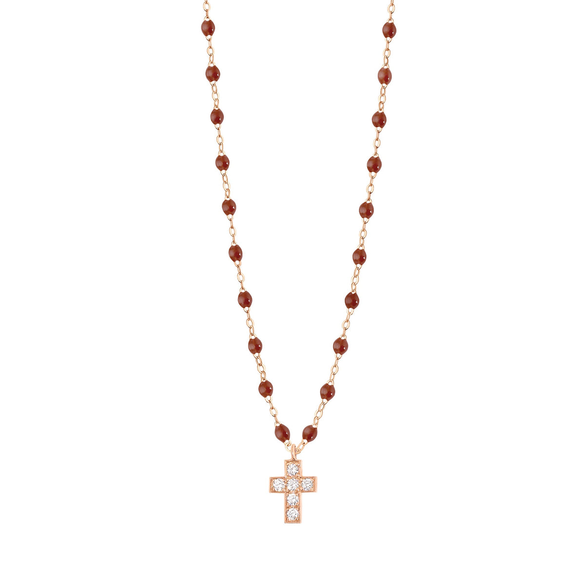 Gigi Clozeau - Collier moka Croix diamants, or rose, 42 cm